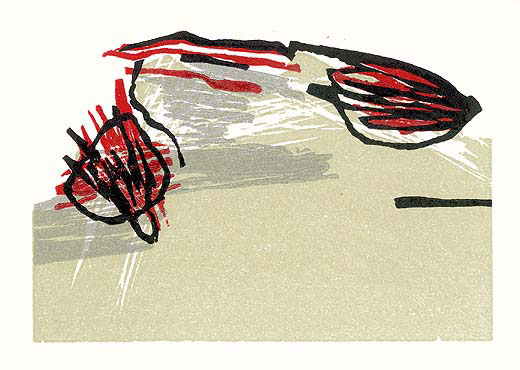 Klappkartensatz mit 5 Motiven, Holzdruck, 4-farbig,