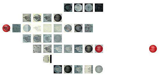WANDGESTALTUNG FÜR EIN UNTERNEHMEN Serie von 35 Motiven, Holzdruck, 1-5 farbig, Druckformat je 15x15 cm, Unikate, 2001