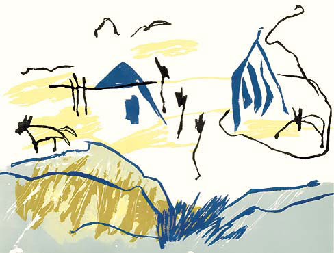 HUSEY Serie von 3 Motiven, Holzdruck, 5 farbig, Druckformat je 33x44 cm, jeweils 10 Auflagenexemplare, 2000