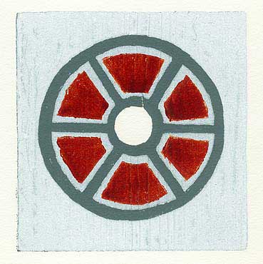 Serie von 3 Motiven, Holzschnitt, 3 farbig, Druckformat 10x10 cm,