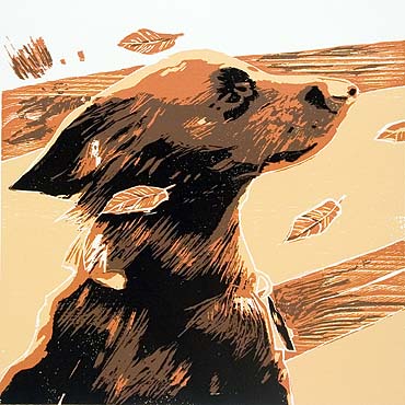 Serie von 6 Motiven, Holzschnitt, 4 farbig, Druckformat 30x30 cm,