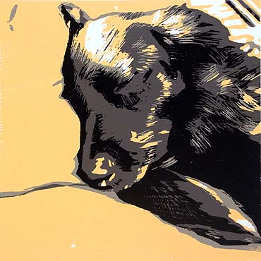 DER MORGEN GEHÖRT DEN HUNDEN Serie von 6 Motiven, Holzschnitt, 4 farbig, Druckformat 30x30 cm, jeweils 6 Auflagenexemplare, 2007
