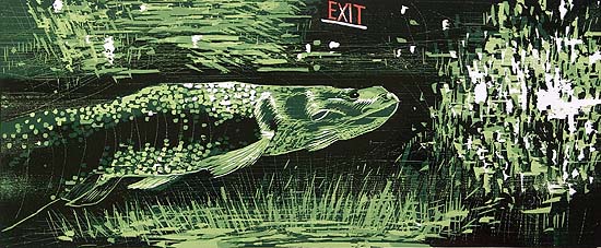 Serie von 4 Motiven, Holzschnitt, 3-5 farbig, Druckformat70x30 cm,